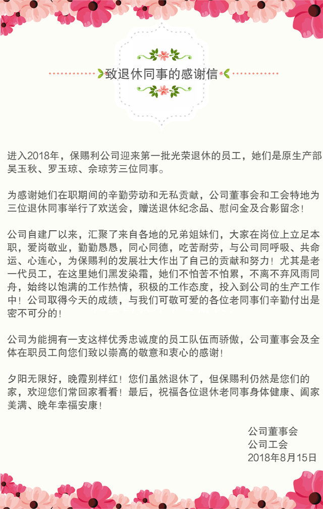 (保賜利執行董事連馨莉小姐與退休老同事合影留念,左一)
