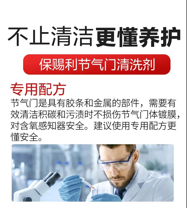 保賜利節氣門清洗劑,快速清除發動機“咽喉”節氣門積碳油泥,恢復澎湃動力。