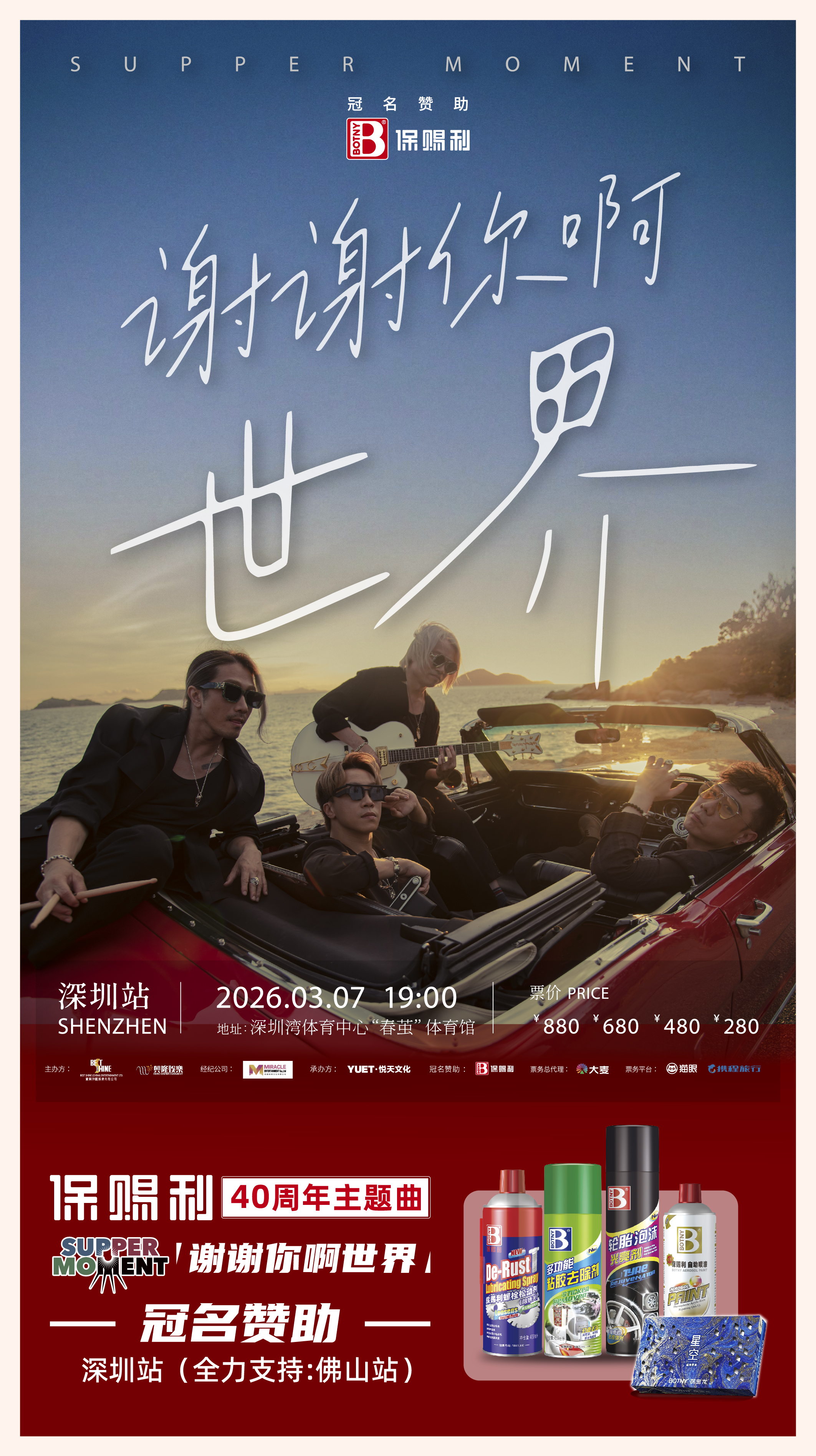 保賜利正式宣布冠名贊助Supper Moment「謝謝你啊世界」3月7日深圳站演唱會(huì),并全力支持1月31日佛山站,攜手樂隊(duì)共同開啟這段充滿力量和希望的音樂旅程。