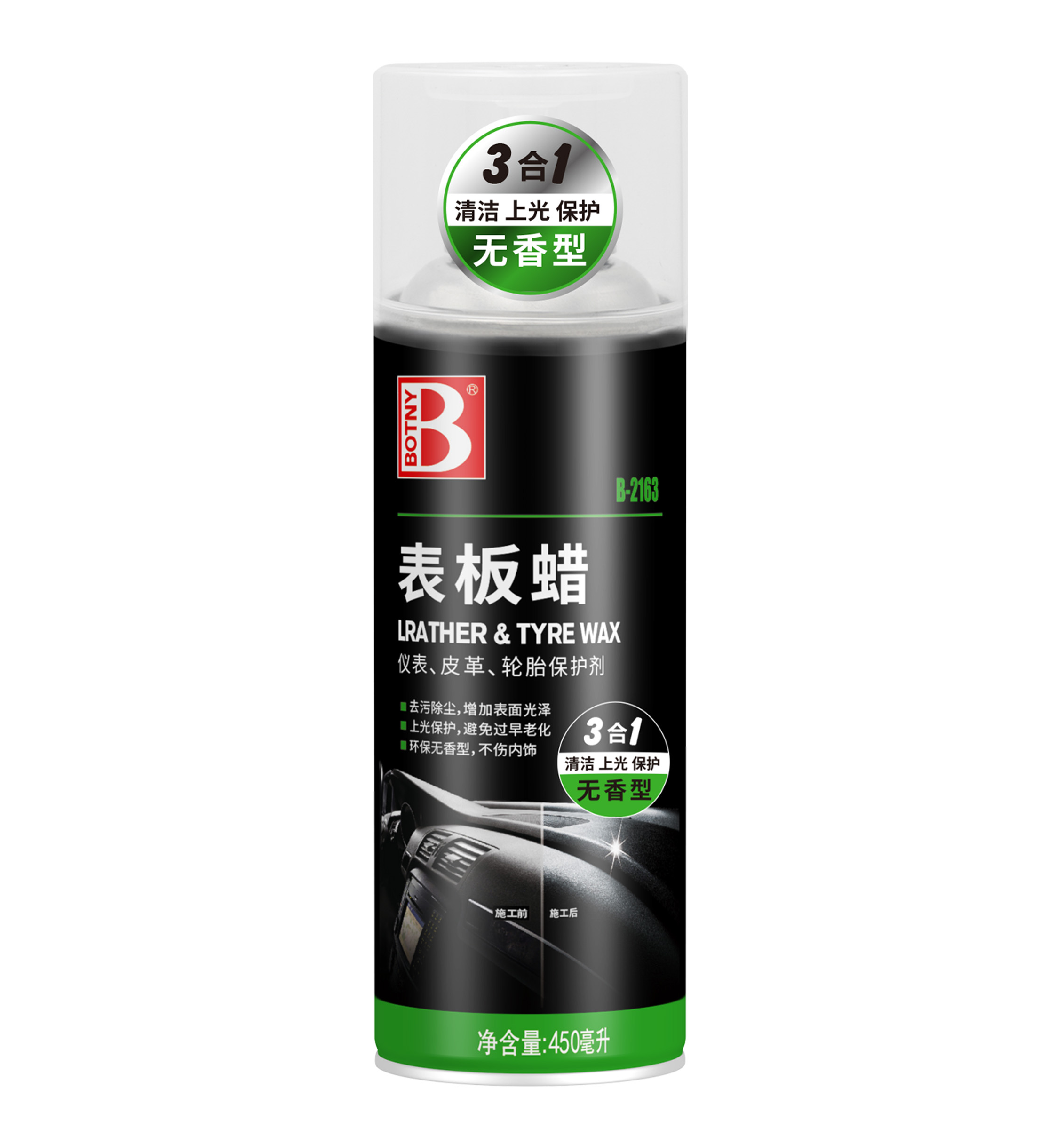 1、適用于車輛儀表板、皮革座椅、合成皮革制品等,增加表面光澤,去污除塵。