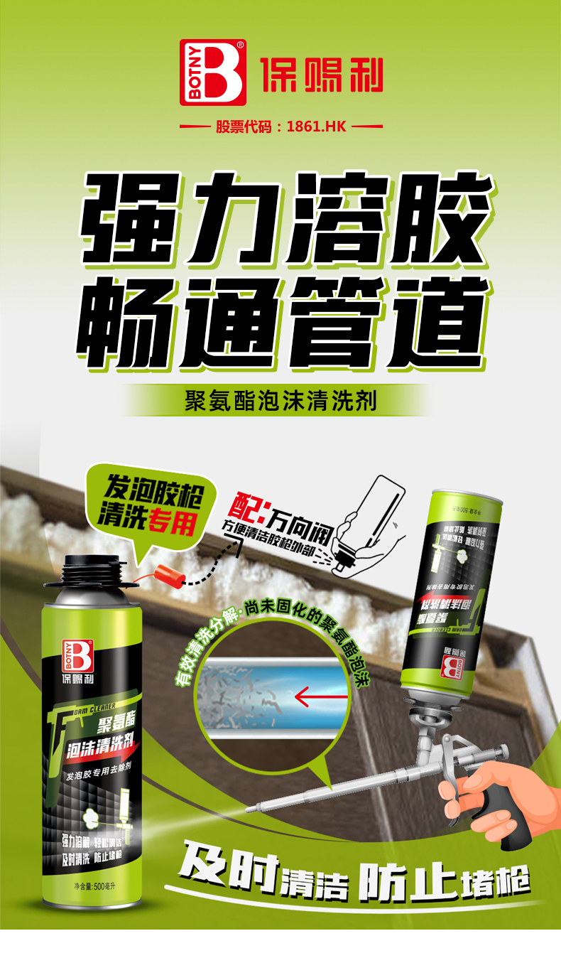 新品推薦 | 保賜利聚氨酯泡沫清洗劑,高效清除發泡膠槍殘膠,暢通管道,防止堵塞。
