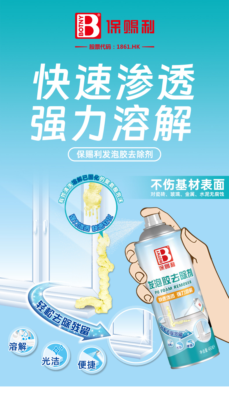 新品推薦 | 保賜利發泡膠去除劑,快速滲透,高效除膠,家居裝修的好幫手!